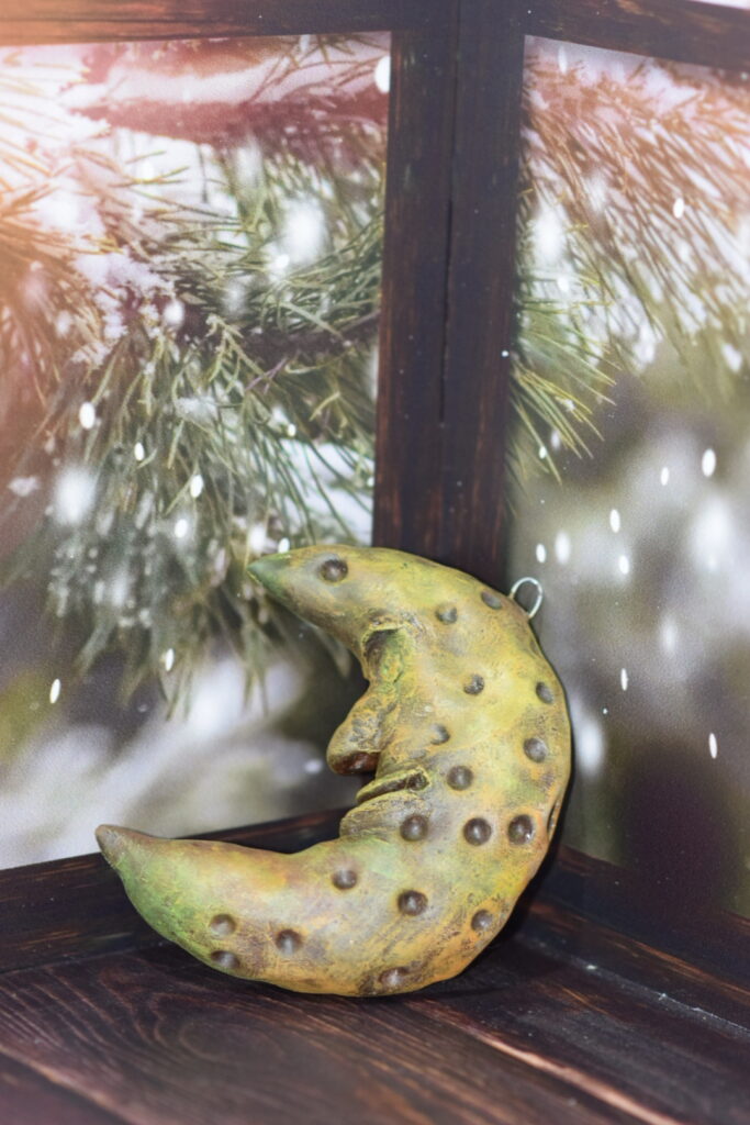 Сегодня я хочу рассказать о создании одной из самых необычных игрушек в моей коллекции — подвеске «Лунный месяц», выполненной из самозастывающей глины. Эта игрушка — не просто украшение, а маленькая история, воплощённая в материале и цвете.